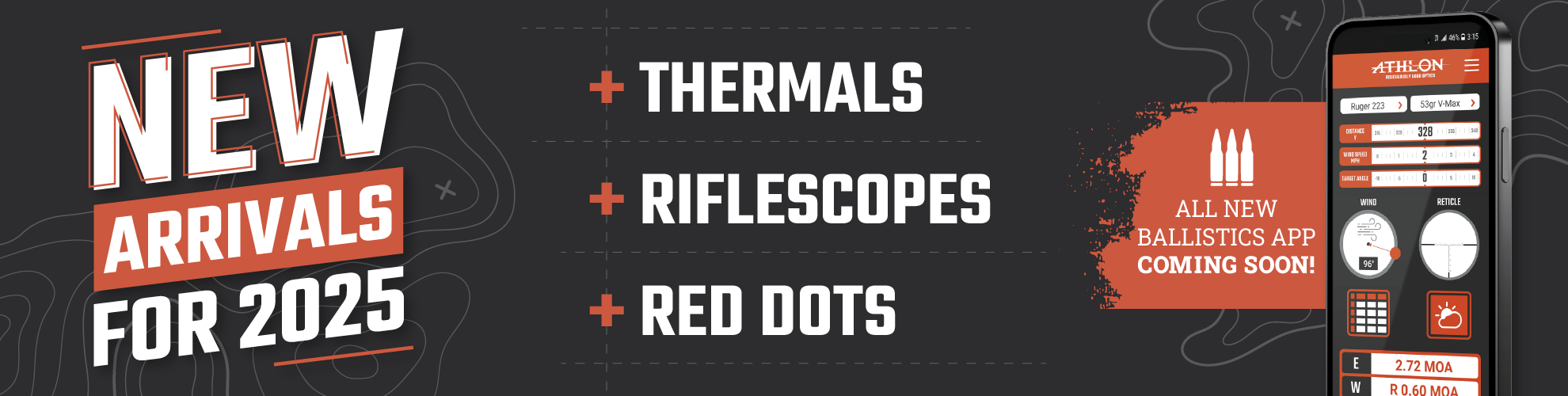 2025 brings an all new line of thermals accompanied by the brand new Athlon Ballistic App. These new thermals cover a wide range of convenience and affordability with the sharp detailed images you come to expect. We also have new clip-on thermals for those of you who do not want to be swapping scopes on and off a rifle. No matter what you are looking for in thermals, Athlon has you covered.